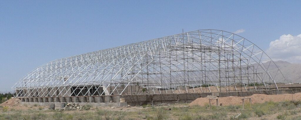 استان مرکزی – دلیجان 1384 استخر قوسی چلیکی سازه فضاکار دولایه بصورت چلیک کامل با دهانه 34 متر در این سازه از لوله های گالوانیزه و نقاط تکیه گاهی بصورت پدستال استفاده شده است